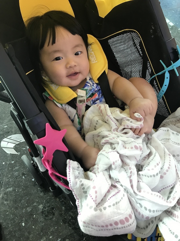 因為工作的關係,因為離不開女兒,更因為和老公想要一家三口盡量在一起,所以我們出國工作,幾乎都帶著蛋黃一起。從她五個月開始,已經和我們去了韓國三次。在之前我也會擔心這麼小的孩子常搭飛機是否會有影響?但我的禾馨兒科醫師表示不會,認為三個月以上搭乘即無問題,因此我們毅然決然帶著蛋黃一起走。