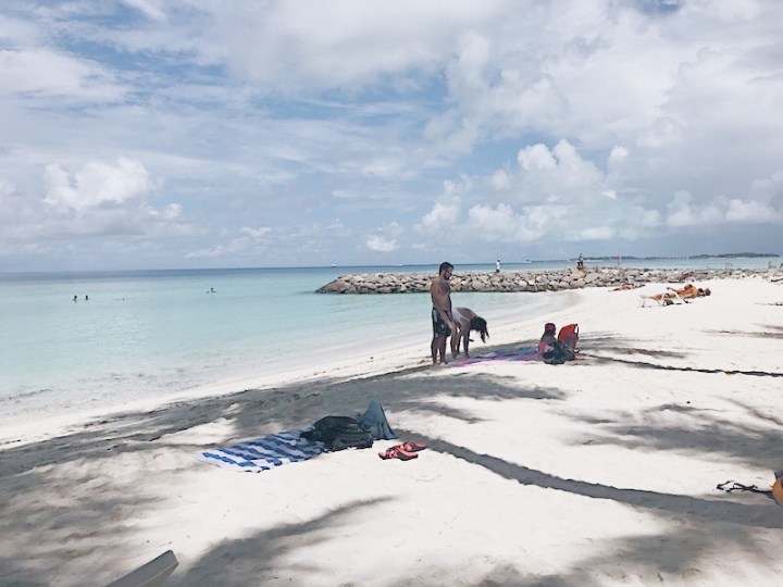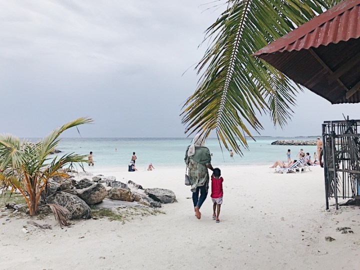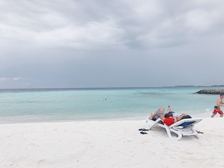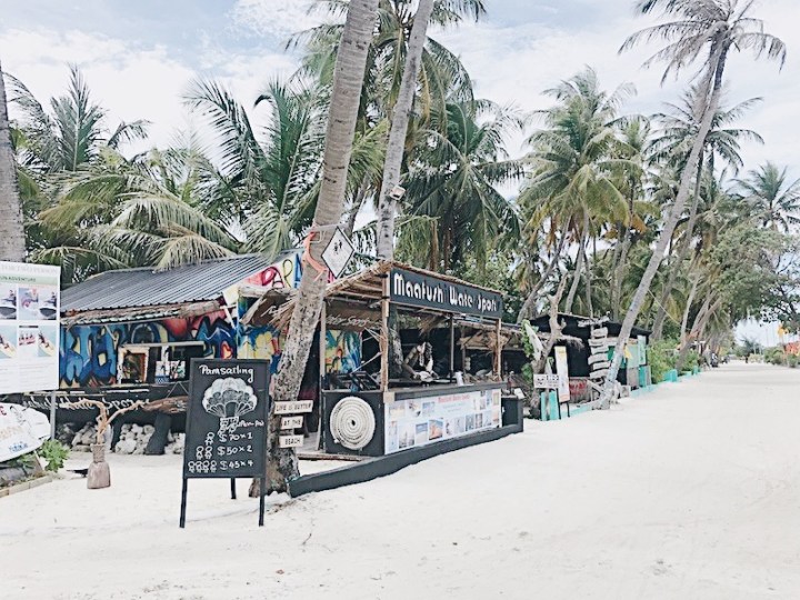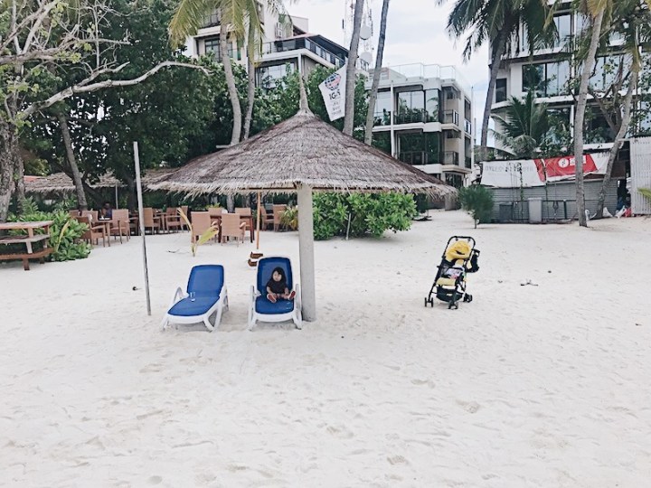 在Maafushi的那幾天,其實我們就是完全沒計畫地在島上走走逛逛,不知道要做什麼的時候,就是去海邊坐坐,享受徹底擺爛的人生,因為這不就是來到馬爾地夫的目的嗎?不過其實大家來的話,可以去參加當地的一些水上活動tour,我們是因為帶著當時還未滿兩歲的女兒,所以所有的水上行程都不參加,畢竟總不能流輪去浮潛之類的。