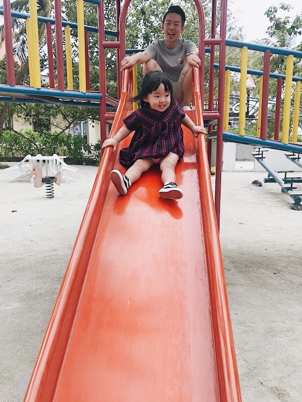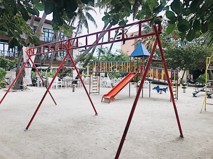 Maafushi渡船口附近,還有座小小的公園,山不在高,有仙則明,公園不用大,有溜滑梯就好,光是溜滑梯就可以打發女兒好一段時間。