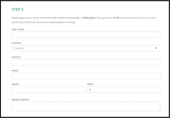 回到首頁點選右上角的Book Now,依序填寫所需資料。
