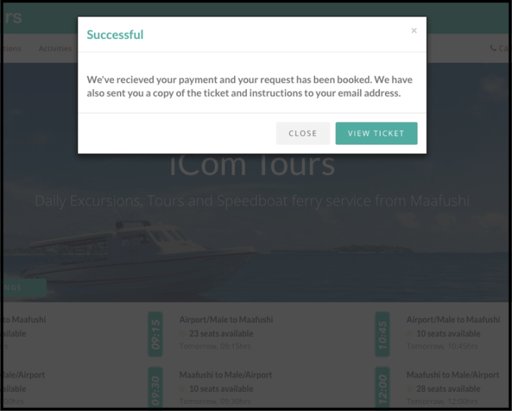 這封信我覺得蠻重要的,會告知你登船的時間。注意信中From Airport這段,當中有提到乘客必須在靠近Informarion Center的地方等待,iCom的人員會在某個時段中在那邊接你。Information Center就是一個半圓形有透明玻璃上頭有貼藍圓白色i字母的櫃檯,這個地方很重要,你有徬徨的地方可以詢問裡面的人員,很多飯店、快艇的業者也都會來這裡找尋遊客。iCom的人員是穿著天空藍制服,你在這附近看到有類似特徵的人時,不要害羞、跟他們眼神對到一下,大概就可以相認了。