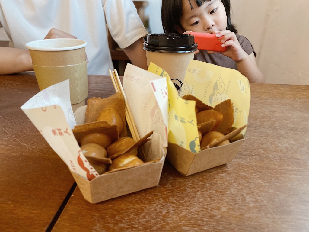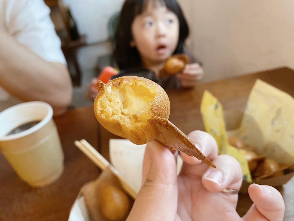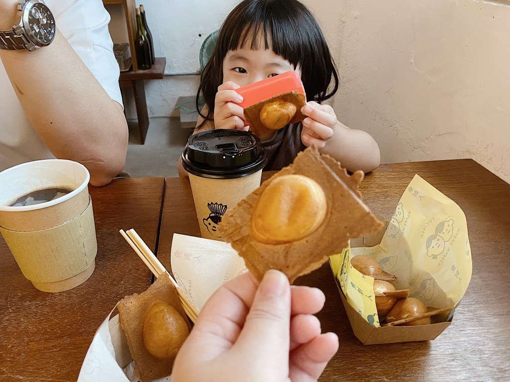 這次我們一家三口點了曾水港紅豆麻糬雞蛋糕、牛奶卡士達雞蛋糕、魚池紅茶拿鐵以及黑咖啡四項餐點。雞蛋糕真的沒有在開玩笑的,是內外兼具的美味雞蛋糕唷。我覺得我們這次點的這兩個口味,是很容易一個處理不好就讓人覺得很甜膩,但可能是魚刺人的雞蛋糕不是走爆漿路線,所以內餡不至於到太多,甜度方面也控制得很好,也由於內餡不到太多,所以還是可以吃到雞蛋糕應有的麵糊香味,我跟老公一致覺得非常好吃。飲料方面也表現得中規中矩,不會讓你覺得不划算、浪費錢。