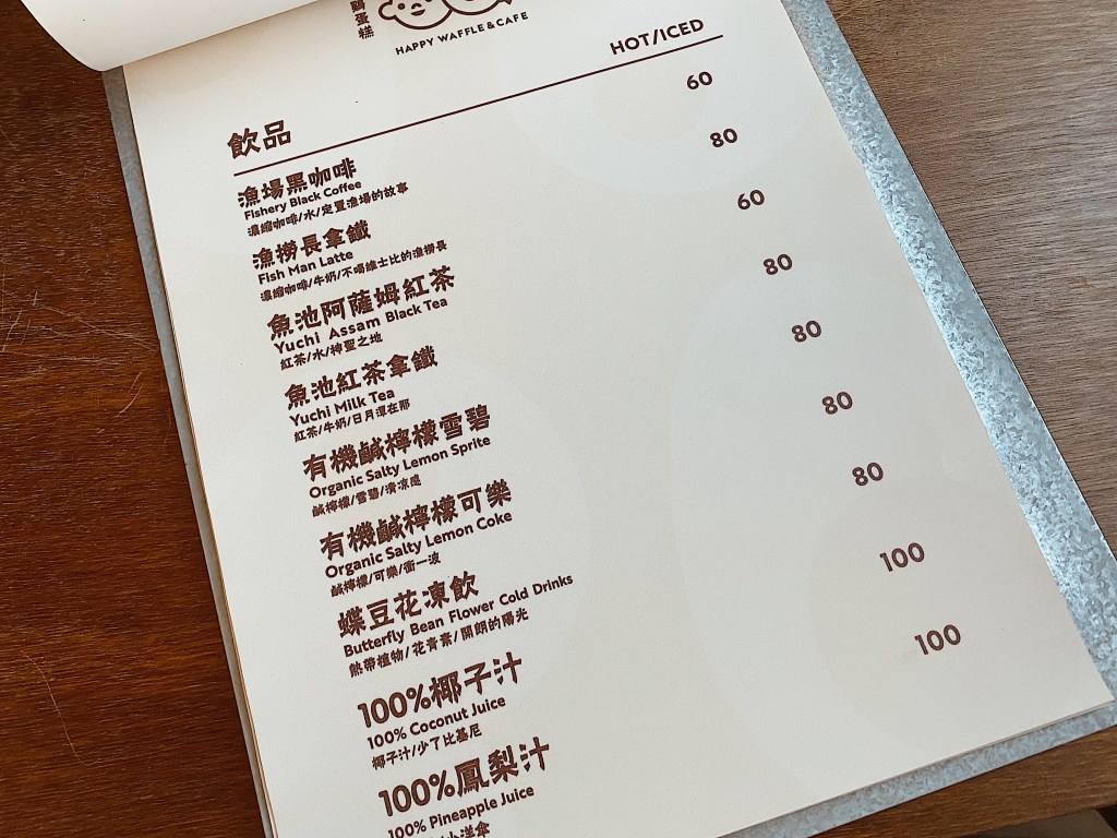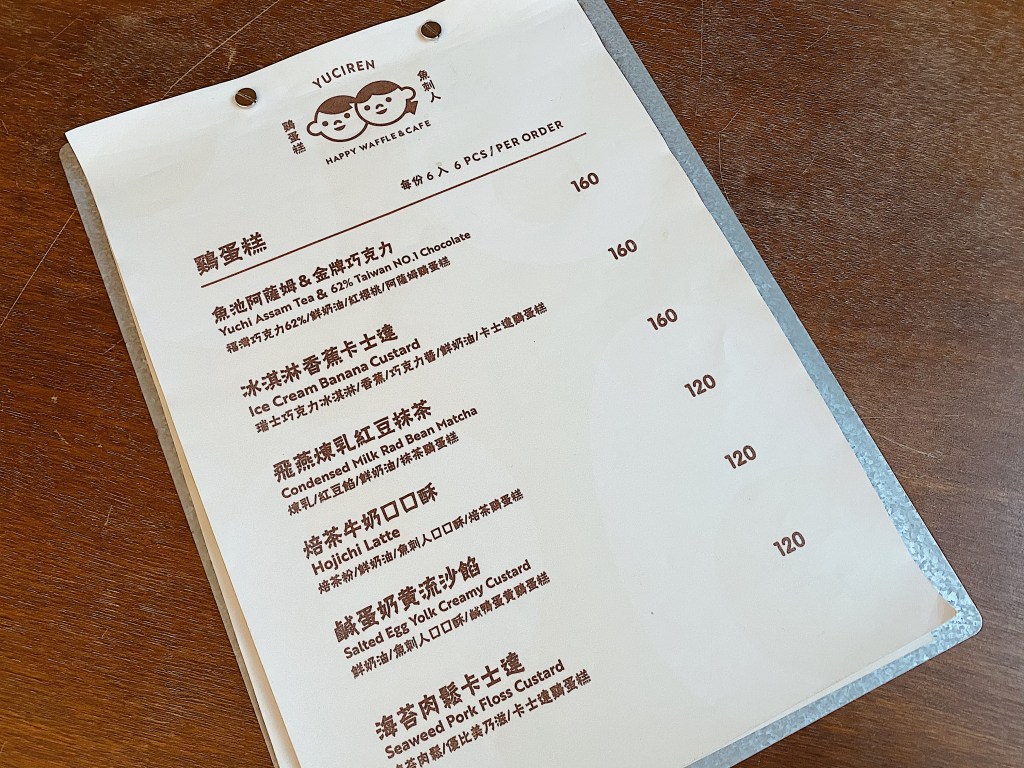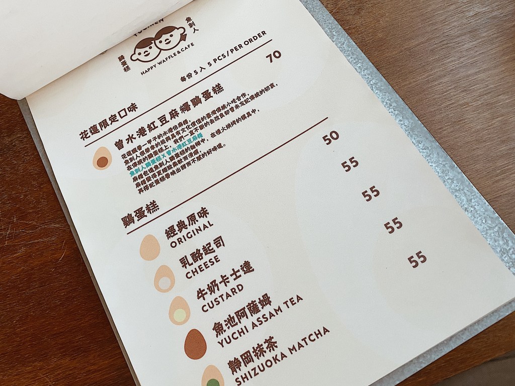 店內就是提供各式雞蛋糕以及飲品,低消就是每人一杯飲料。菜單最吸睛的應該就是花蓮店的限定口。魚刺人與曾水港合作推出了紅豆麻糬口味的雞蛋糕,來到花蓮就要吃麻糬啊。