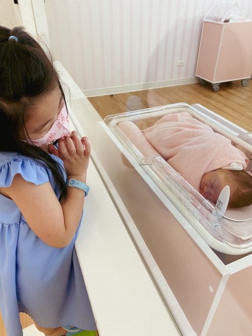 整個坐月子最辛苦的部分,是因為沒有後援、也考量當時正處於疫情嚴峻狀態,所以蛋黃基本上就是全程跟著我一起待在月中。這間月中雖然大寶可以進來,不過有王不見王的規定,也就是大寶在的時候,二寶不能入房。因此除了蛋黃短暫回家的一兩天,我才有機會讓二寶進來房間、我倆才有獨處的機會,不然我都只能抓著一天中的一兩餐上去哺乳室瓶餵二寶,相處的時間實在少得可憐,導致我一直覺得跟二寶不夠熟。