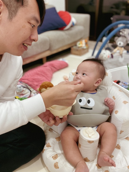 這次我是徹底的用金錢來換取時間與快樂,副食品全部都是買市售的。從最初的米泥,是的、我連米泥都是買現成的寶寶泥,一路吃到現在的寶寶粥、寶寶燉飯。不再花時間蒸煮食物、打碎食物,也不再買一堆器具做冰磚。以前連帶著姊姊出國時,我都扛著冰磚出去,回想起來真的有點偏執。這次我走了完全不一樣的路,但真的輕鬆很多,我也快樂很多,更享受育兒生活。