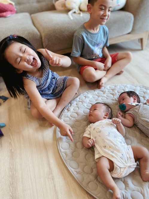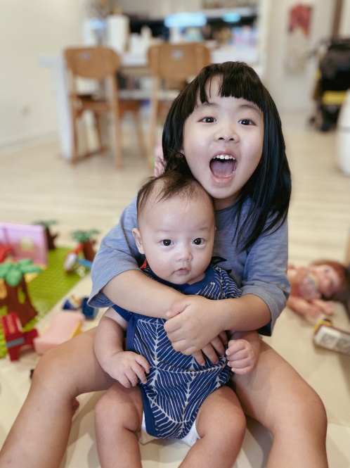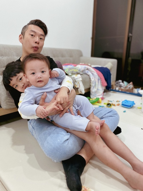 剛回到家的那幾天,真的是近期人生最惡夢的一段日子吧,大的因為三級警戒所以停學在家,小的初入人世所以也在震盪期,高齡新手二寶家長努力地建立起照顧兩個孩子的步調。而且二寶出生的時期,其實剛好也是我們新房裝潢的期間,未來的家還沒好,當下的家又一團亂,在在都是考驗我們夫妻感情的檻啊。