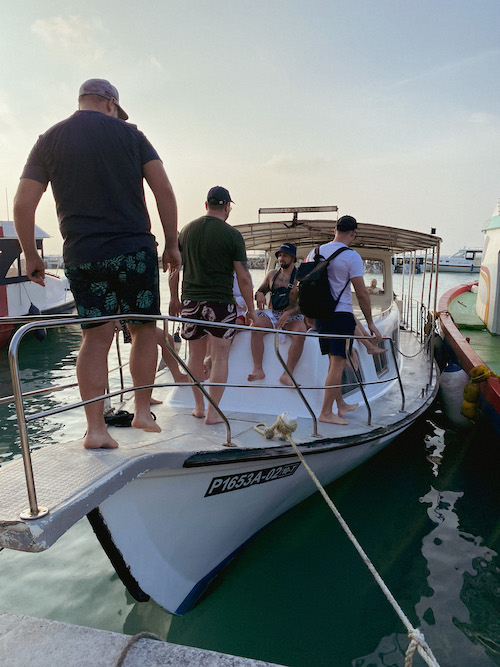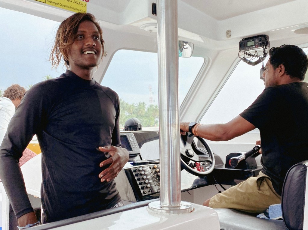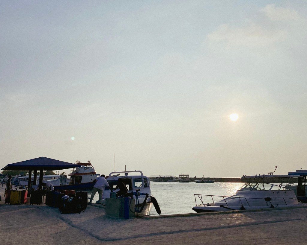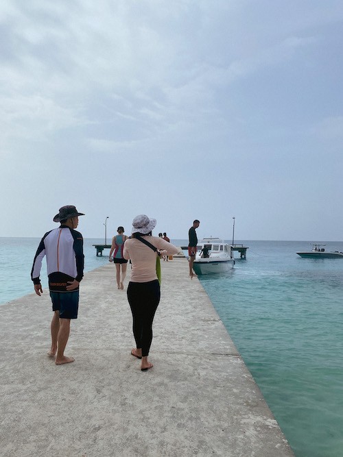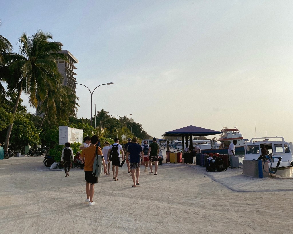 活動當天下午5點在我們下塌的Kaani Palm Beach一樓大廳集合,不過來到馬爾地夫就要入境隨俗,包容一下他們超級relax的步調,說是5點集合,但都要為了不知明的理由東等西等,大概5點半點才會正式出發前往碼頭。我們這趟行程除了同樣入住Kaani的客人外,還有一部分是來自其他的飯店,等所有人會合之後,當地地陪會要大家來拍個合照。這個時候千千萬萬不要害羞、不要想說就不入鏡,因為晚餐的時候飯店人員可是有查看這張照片確定你是不是真的有參與這次的活動,這是證據啊!!