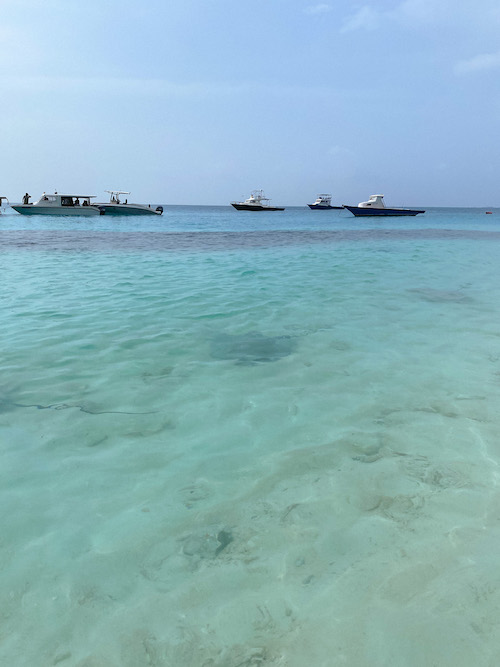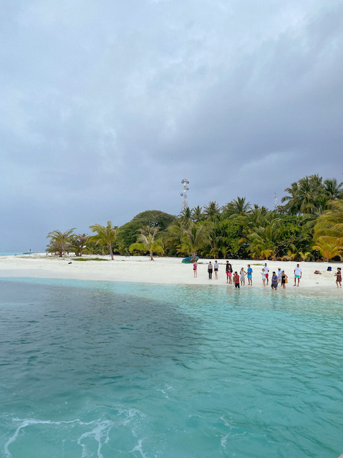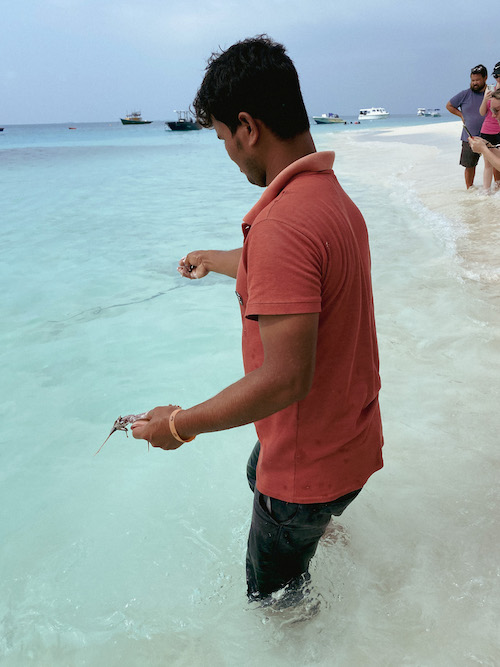 第二站是來到另一居民島–Fulidhoo看魟魚。Fulidhoo是座相較於Maafushi更為迷你而純樸的居民島,人口更少,但植披茂盛,水質也很好,在沙灘旁邊不時都會有成群的魟魚以及護士鯊在悠遊,來到這裡可以近距離的接近這些可愛的小動物,非常療癒。