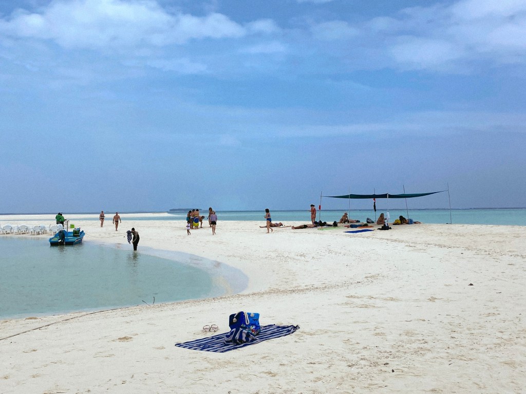 享用完午餐後,還有些時間,大家就可以在海邊玩玩水、踏踏浪。這邊的海水相當淺,我那恐水的女兒都可以玩得相當開心,還蠻不錯的。吃飽喝足玩完後,就展開漫長的回程時間,回到Maafushi大概是下午兩點多。
