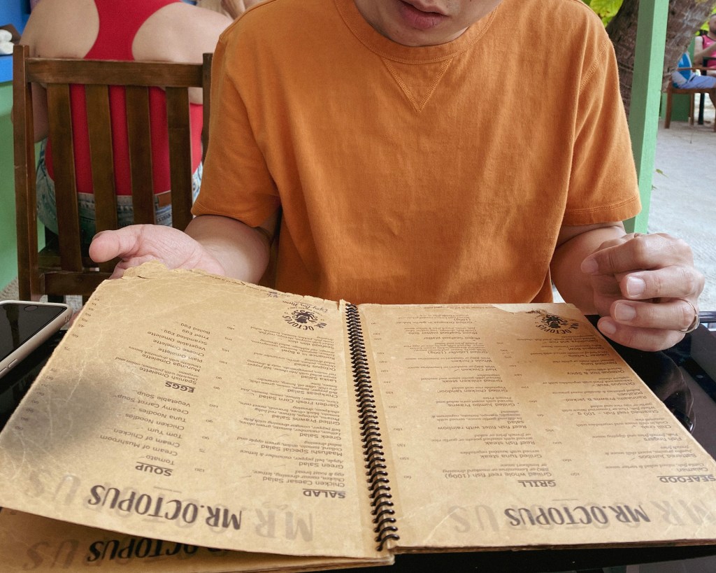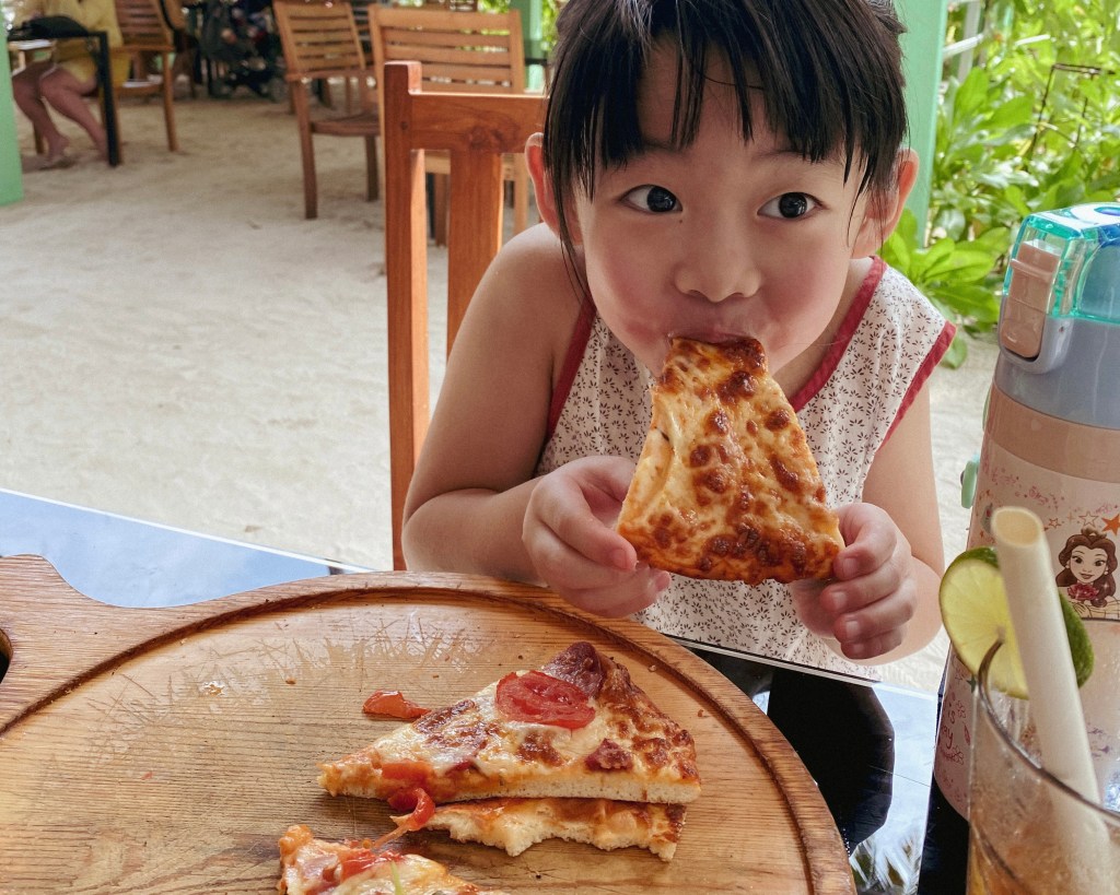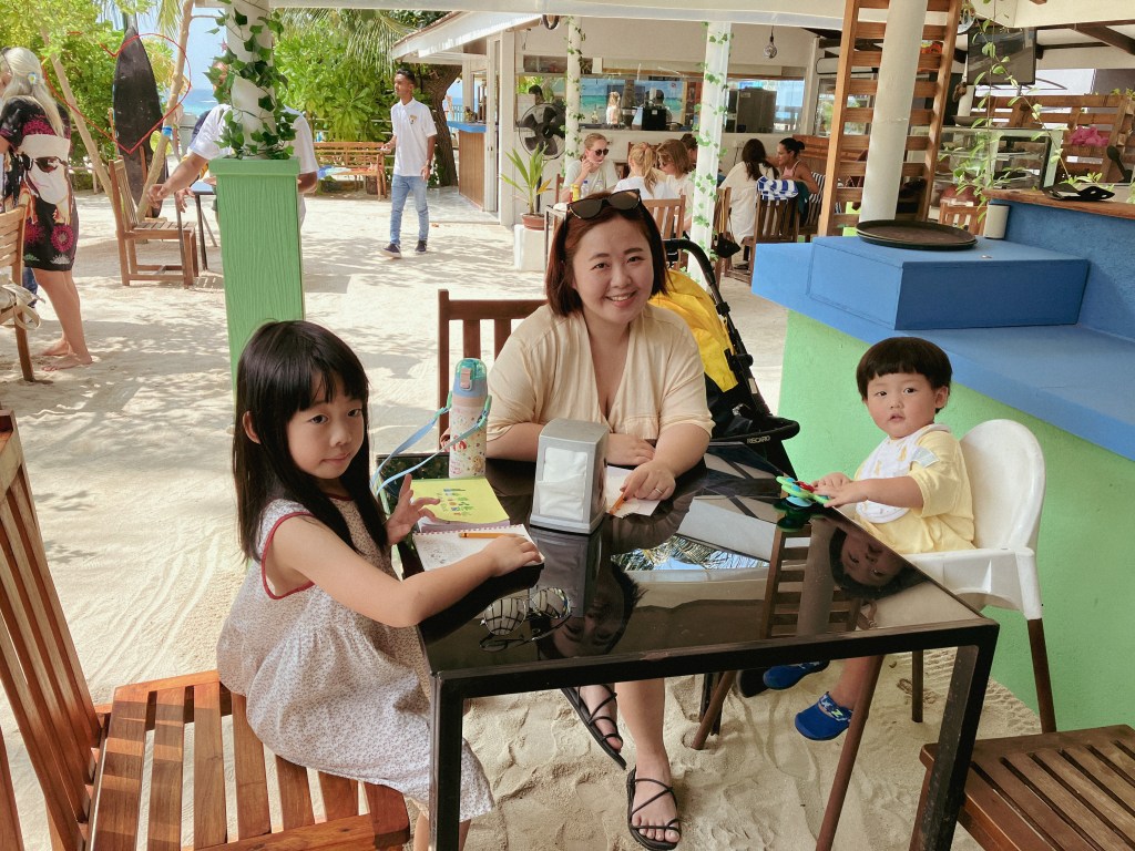 再三強調,大家如果來到Maafushi,就要對於他們的步調有心理準備,不用急,時間一到自然會有人來服務你、食物自然就會上桌了(我說話變得好委婉)。不過我自己是給予這間餐廳蠻高的評價的,可能是章魚炒飯真的太合我們的胃口了;但主要負責解決pizza和漢堡的老公就覺得還好。最後結帳金額是45美金,大約1300台幣左右,一家四口這樣吃,我覺得算蠻實惠。