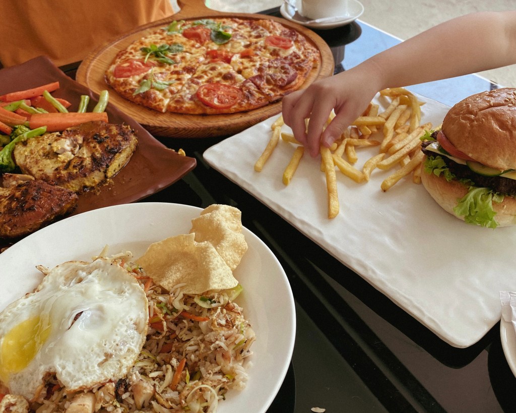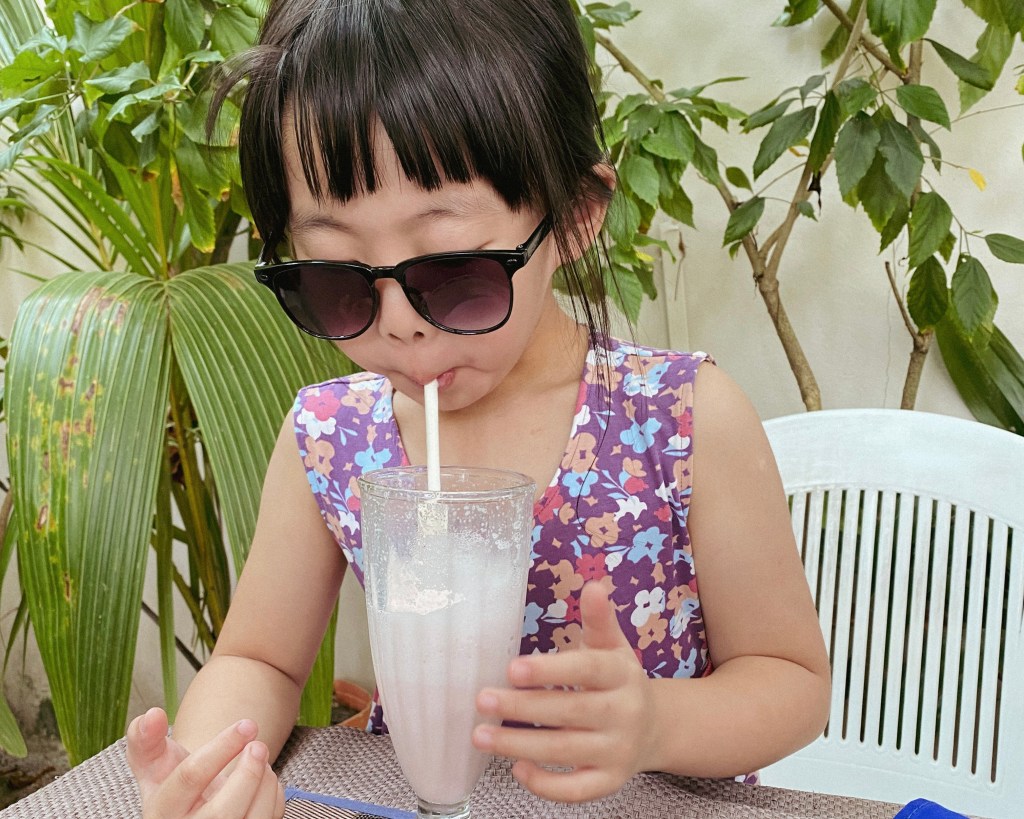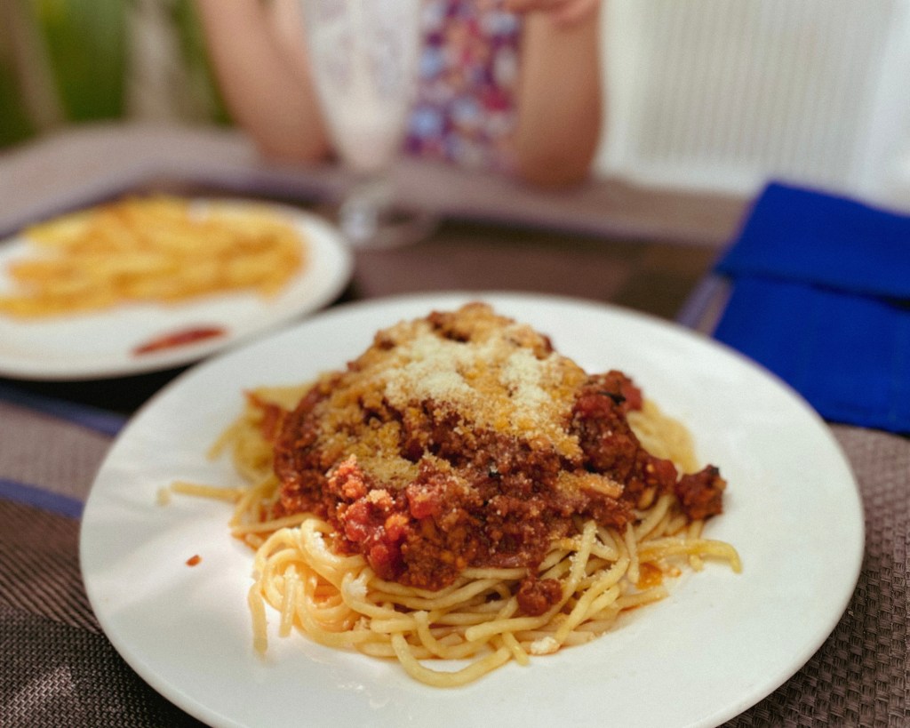 我們點了鐵板綜合海鮮, 裡面有小捲、蝦子、淡菜、魷魚以及許多的 蔬菜;這道是店員推薦的,店員說的話相當可信!因為真的很好吃。除了風味迷人外,海鮮也都相當軟嫩好入口。 這道菜有附蒜飯,也非常的涮嘴唷。還點了薯條以及波隆那大利麵;這兩道是點給小孩的,連常見的波隆那義大利麵都可以非常好吃到底是為什麼呢?口味濃郁,讓人忍不住一口接一口。最後還有點 tom yum炒飯,配料有蝦、魷魚、青椒等,口味酸中帶微辣,吃了一口後會停不下來耶,相當好吃!兒子還在這裡喝了人生第一口草莓奶昔,回憶無價。