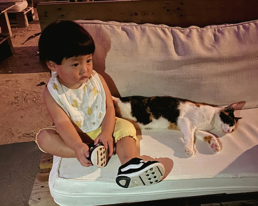 Maafushi有很多的野貓,這邊的人感覺對貓也蠻友善的。我們在Moonlight的這晚,就有遇到好多隻親人的貓,是那種如果你願意、會賴在你身上的那種親人。不過再親人的野貓也還是要注意,因為透董當天就被一隻原本看似溫馴、自己跑去他身邊膩著的貓咪給抓了,身體的傷還好,倒是心碎了一地。