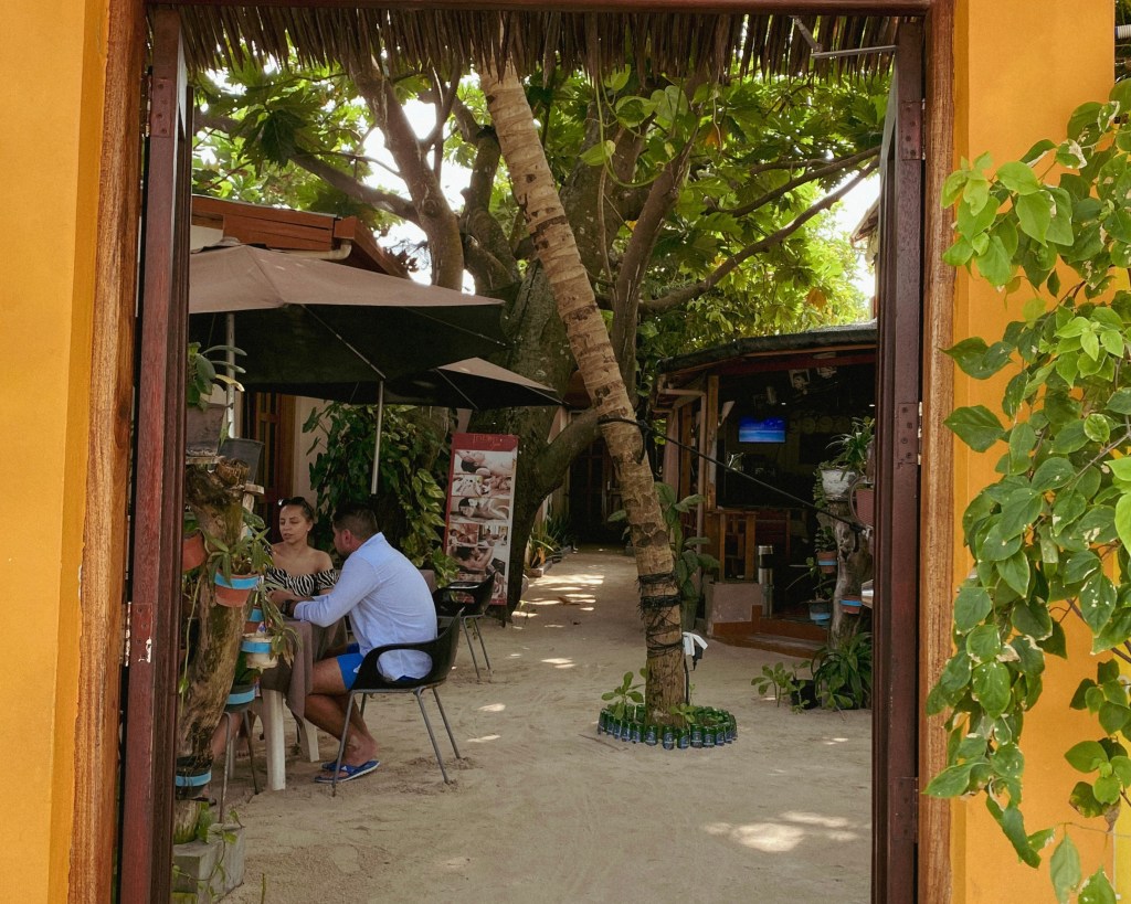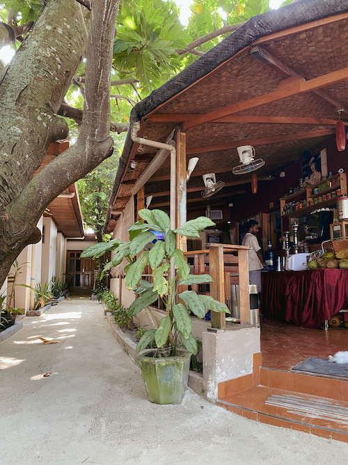 在Maafushi的最後一個完整一天,中午我們前往Stingray Cafe用餐。這間餐廳其實是間旅店的對外營業餐廳,整體裝潢相當具有南亞風情,木造的建築給人悠哉度假的愜意風味,店內種植了許多大大的棕櫚樹,即使Maafushi的氣候永遠炎熱,但是坐在這裡就會有種自然的涼爽感。